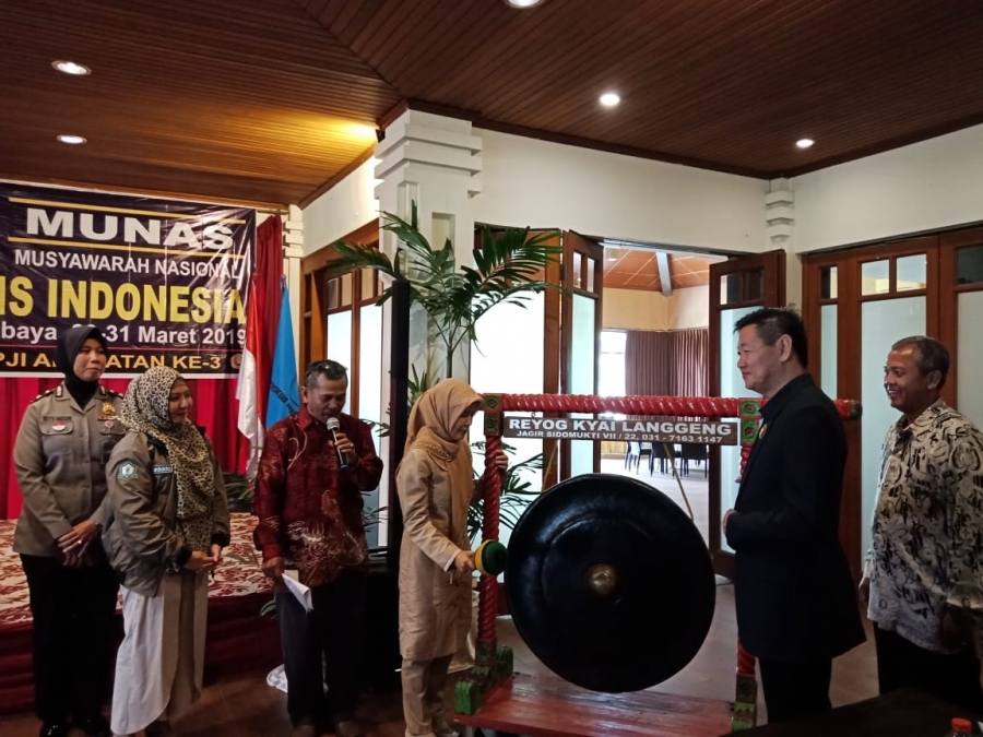 Jum’at 29/3/2019 jam 10.30, Munas II PJI dibuka dengan pemukulan gong sebanyak 5 kali oleh Siti Meiningsih mewakili Presiden RI, disambung Sholat Jum’at dan istirahat makan siang.